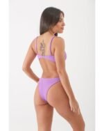 Bikini confeccionada con Lycra texturada. Top con circulo en medio y bombacha vedetina en V pronunciada.