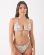Bikini confeccionada con Lycra Estampada. Triangulo básico para atar y bombacha less para atar.
