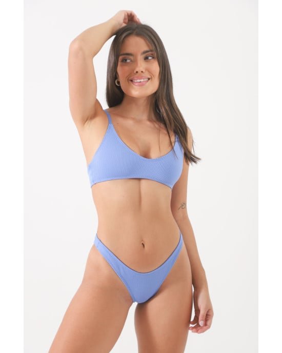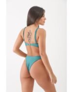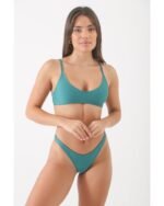 Bikini confeccionada con Lycra texturada. Top en V con regulador y bombacha semiless.
