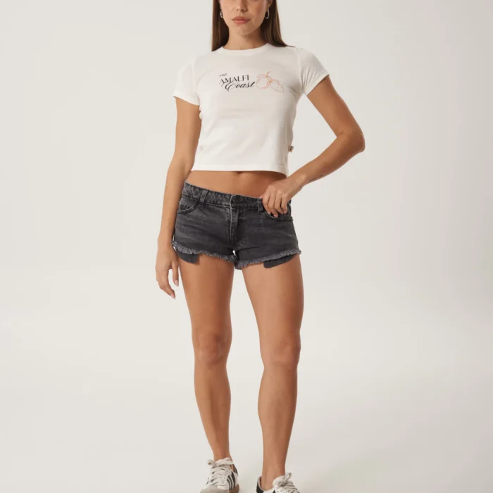 Bermuda cargo larga hebilla cintura tiro medio tela rígida.