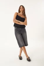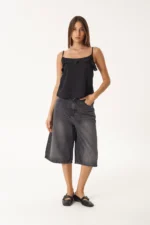 Luce un estilo relajado y moderno con esta bermuda de jean gris desgastada. Su corte amplio ofrece comodidad y movimiento, ideal para crear outfits casuales con un toque urbano. Con bolsillos delanteros y traseros, y un acabado deslavado que le da ese aire vintage que amamos, esta bermuda es perfecta para combinar con tops, blusas o crop tops.