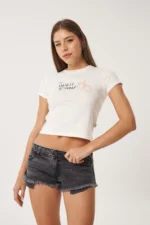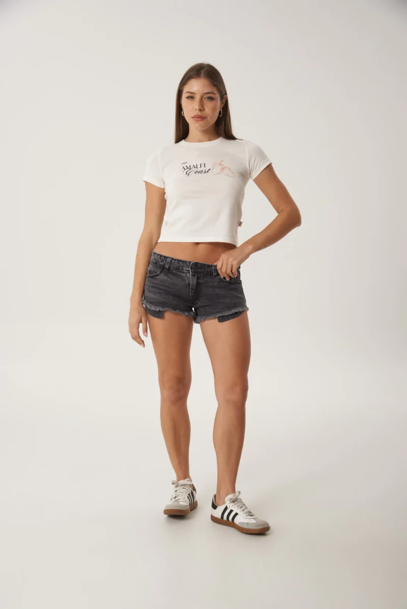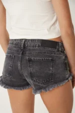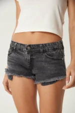 Short denim gris con efecto desgastado y terminaciones desflecadas. Cómodo, canchero y perfecto para combinar con tus remeras favoritas.