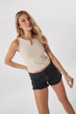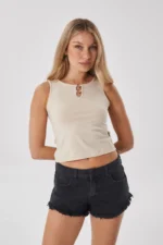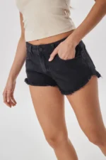Short de denim negro con terminación desflecada y textura suave al tacto. Su tono lavado le da un aire moderno y fácil de combinar, ideal para un look relajado pero con estilo. Perfecto para usar con tops, musculosas o camisas oversize, es un básico infaltable para cualquier temporada.