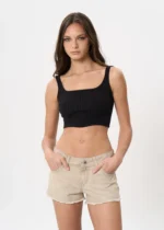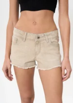 Este short de jean en tono óxido con bordes deshilachados es la opción ideal para un look fresco y casual. Su diseño atemporal se adapta a cualquier ocasión, dándote comodidad y estilo en un solo toque. Combínalo con tus tops favoritos y crea un outfit perfecto para los días más cálidos.